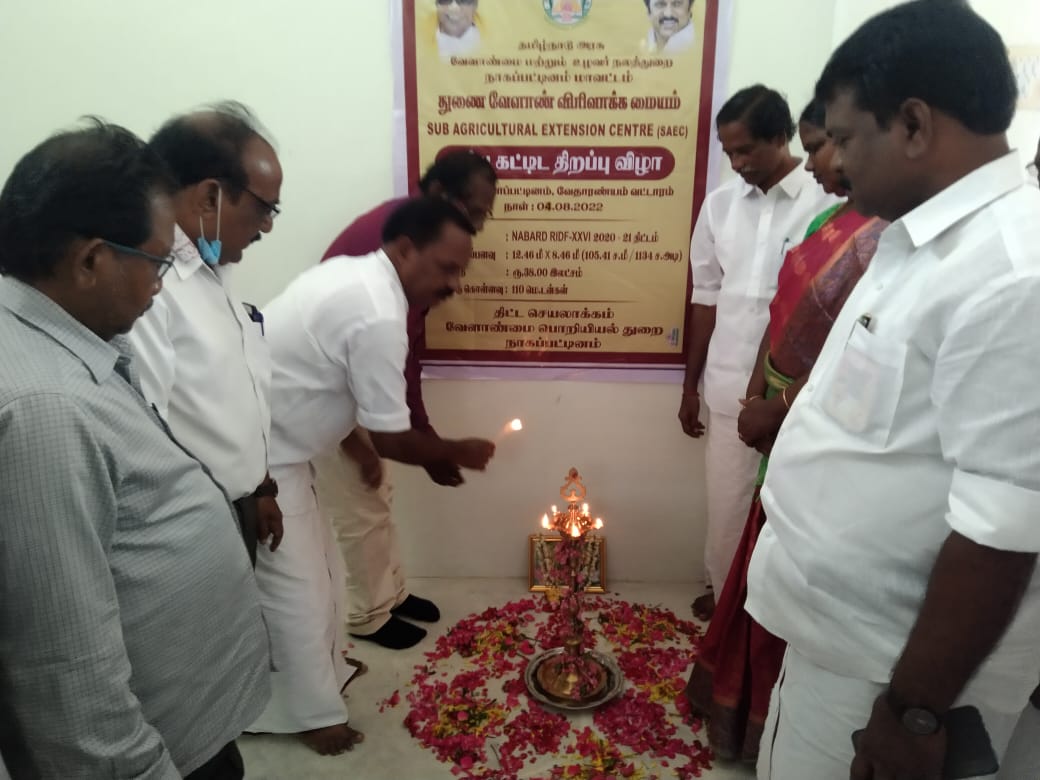 நாகை மாவட்டம் வேதாரண்யம் அடுத்த கரியாப்பட்டினத்தில் வேளாண்மை பொறியல் துறை சார்பாக 38 இலட்சம் செலவில் புதிதாக கட்டப்பட்ட துணை வேளாண் விரிவாக்க மைய