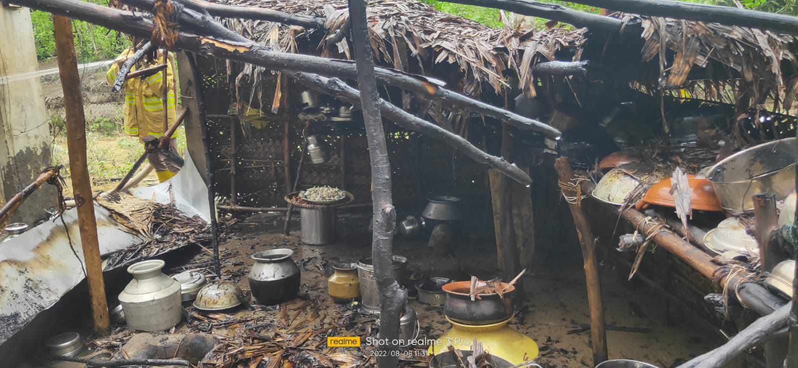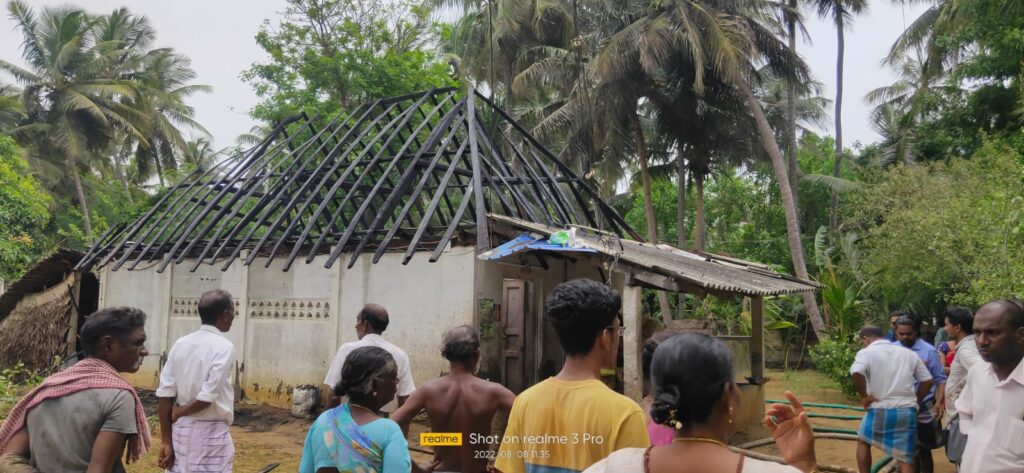 அவருக்கு சொந்தமான கூரை வீட்டில் மின்கசிவு காரணமாக தீ விபத்து ஏற்பட்டு வீடு முழுவதும் எரிந்து விட்டது. தீ விபத்து ஏற்பட்ட போது வீட்டில் யாரும் இல்லை.