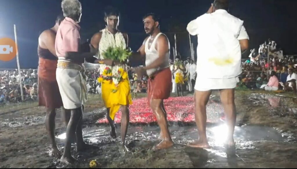 வேதாரணியம் அடுத்த அண்டர் காடு கிராமத்தில் அமைந்துள்ள திரவுபதி அம்மன் திருக்கோயில் தீமிதி திருவிழா