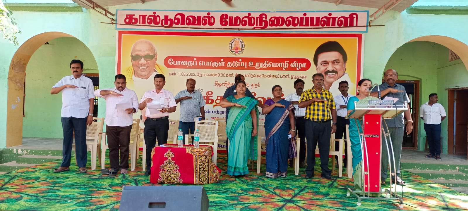 தூத்துக்குடி கால்டுவெல் பள்ளியில் போதைப் பொருள் தடுப்பு உறுதிமொழி விழா நடைபெற்றது. இந்த நிகழ்ச்சிக்கு பள்ளிதாளாளர் ஸ்டேன்லி வேதமாணிக்கம் வரவேற்புரையாற்றினார். சிறப்பு விருந்தினராக கலந்து கொண்டு சமூகநலன் மற்றும் பெண்கள் உரிமைத்துறை அமைச்சர் கீதாஜீவன் பேசுகையில் ,