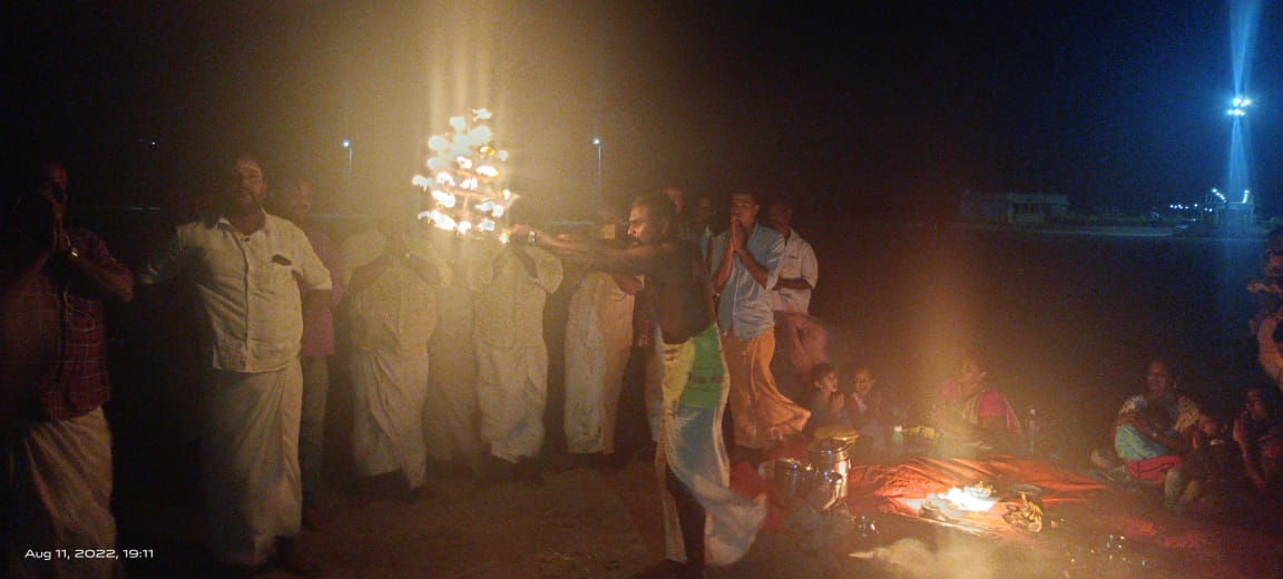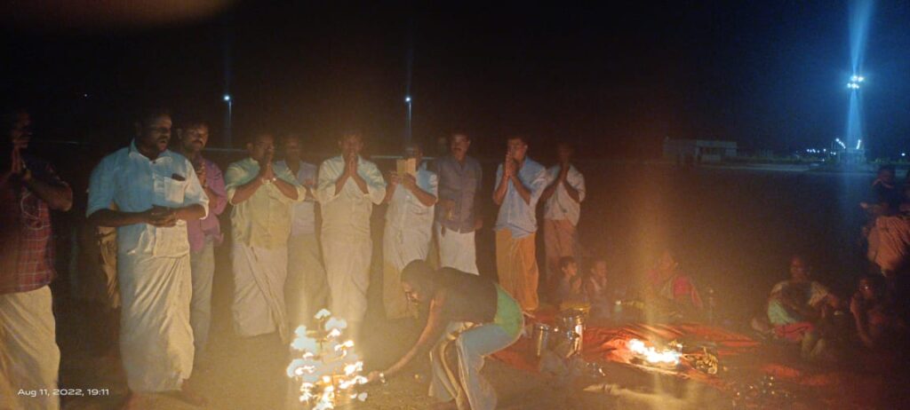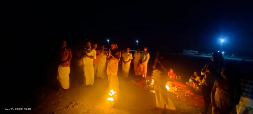 வேதாரண்யம் கடலில் பௌர்ணமி யொட்டி கடலில் சமுத்திர ஆராத்தி பூஜை நடைபெற்றது.