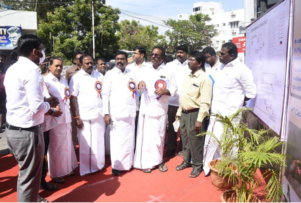 கடலோர பேரிடர் அபாயக் குறைப்புத் திட்டம் தொகுப்பு-7ன் விபரங்கள் உலக வங்கி நிதியுதவியுடன் நாகை மாவட்டம் வேளாங்கண்ணி பகுதிக்கு தரை வழி மின் பாதை அமைக்கும் பணிக்கு மேல்நிலை மின் விநியோகத்தை நிலத்தடி (தரை வழி) புதை வட மின் பாதை அமைப்பாக மாற்றுவதற்காக தமிழ்நாடு மின் உற்பத்தி மற்றும் பகிர்மான கழகம், பாலிகேப் மும்மை குழுமத்துடன் ஒப்பந்தம் செய்து மொத்த ஆயத்த தயாரிப்பு அடிப்படையில் திட்ட மதிப்பு: ரூ.58.85 கோடி ரூ.62.14 கோடியாக திருத்தப்பட்ட மதிப்பு பயன் பெறும் பகுதிகள்வேளாங்கண்ணி நகர் பகுதி, ஆலய பகுதி, செருதூர், கிழக்கு கடற்கரை சாலை, சுனாமி நகர், பூக்காரத் தெரு, கிராமத்து மேடு, சிவன் கோயில் மற்றும் கீச்சாங்குப்பம் ஆகிய பகுதிகள் பயன் பெறும்.