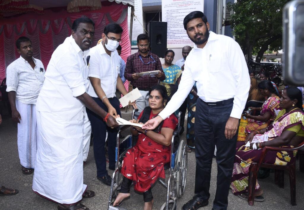 மாற்றுத்திறனாளிகள் நலத்துறை சார்பில் 33 மாற்றுத்திறனாளி நபர்களுக்கு ரூ.7,40,000 மதிப்பிலான காசோலை வழங்கப்படுகிறது. நாகப்பட்டினம் மாவட்ட உதவி இயக்குநர் சுரங்கம் மற்றும் கனிமவள அறக்கட்டளை அலுவலகத்தின் வாயிலாக 8 மாற்றுத்திறனாளிகளுக்கு ரூ.72,400 மதிப்பிலான மூன்று சக்கர சைக்கிள் வழங்கப்படுகிறது. நாகப்பட்டினம் இணை பதிவாளர்கூட்டுறவுத்துறை வாயிலாக 16 நபர்களுக்கு ரூ.7,25,000 மதிப்பிலான காசோலை வழங்கப்படுகிறது. மற்றும் நாகப்பட்டினம் மாவட்டத்தில் உள்ள தேசிய மையமாக்கப்பட்ட வங்கிகள் வாயிலாக 60 நபர்களுக்கு ரூ.15.00 இலட்சத்துக்கான ஆணைகள் வழங்கப்படுகிறது. மொத்தம் 109 பயனாளிகளுக்கு ரூ.30,37,400 மதிப்பிலான நலத்திட்ட உதவிகள் வழங்கப்படுகிறது.