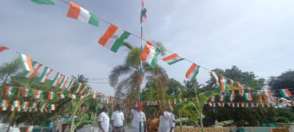 வேதாரண்யத்தில் 76 வது சுதந்திர தினத்தை ஒட்டி அரசு அலுவலகங்களில் தேசிய கொடி ஏற்றப்பட்டது .