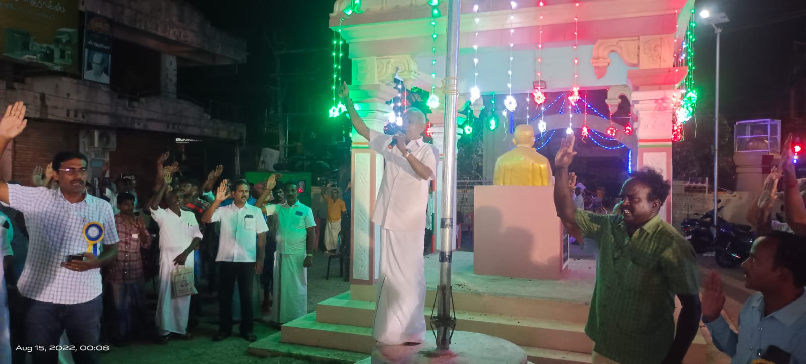 வேதாரண்யத்தில் 76 வது சுதந்திர தினத்தை ஒட்டி நள்ளிரவில் தேசியக்கொடி ஏற்றப்பட்டது.