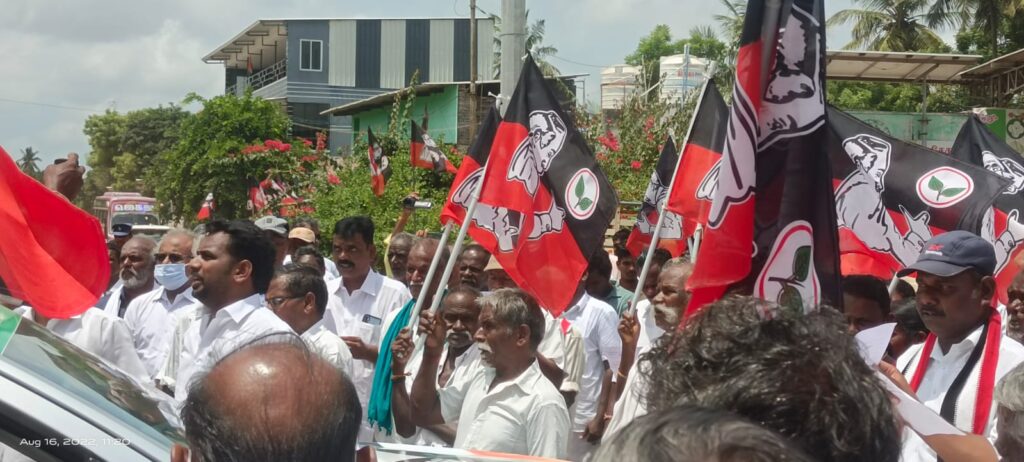 வேதாரண்யத்தில் வேதாரணியம் கோட்டாட்சியர் அலுவலகம் முன்பு முன்னாள் அமைச்சர் வேதாரண்யம் சட்டமன்ற உறுப்பினர் ஓ எஸ் மணியன் தலைமையில் கண்டன ஆர்ப்பாட்டம் .