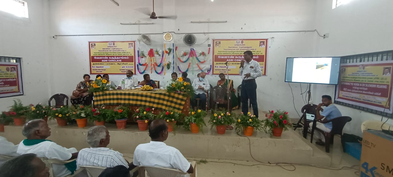 மீன்வளத்துறை, கால்நடைத்துறை, வேளாண் விற்பனை மற்றும் வணிகத்துறை ஆகியவற்றின் அதிகாரிகள் வந்திருந்த விவசாயிகளுக்கு வேளாண்மை தொழில்நுட்பம் மற்றும் திட்டங்கள் பற்றி பயிற்சி அளித்தனர்.