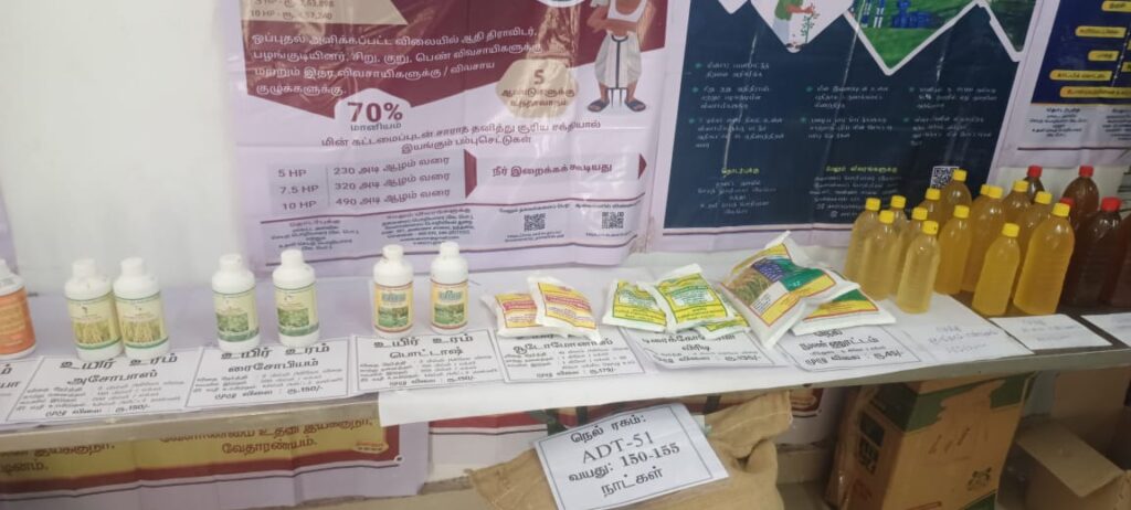 வேளாண் பயிற்சி இயந்திரங்கள் ஆகியவை பார்வைக்கு வைத்திருந்தனர். இந்த வேளாண் கருத்தரங்கில் ஏராளமான விவசாயிகள் கலந்து கொண்டனர்.
