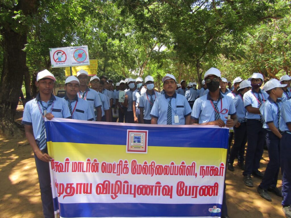 நாகூர் மாடர்ன் மெட்ரிக் மேல்நிலைப் பள்ளி மாணவ மாணவிகள் சார்பாக போதை பொருட்களுக்கு எதிரான சமுதாய விழிப்புணர்வு பேரணி