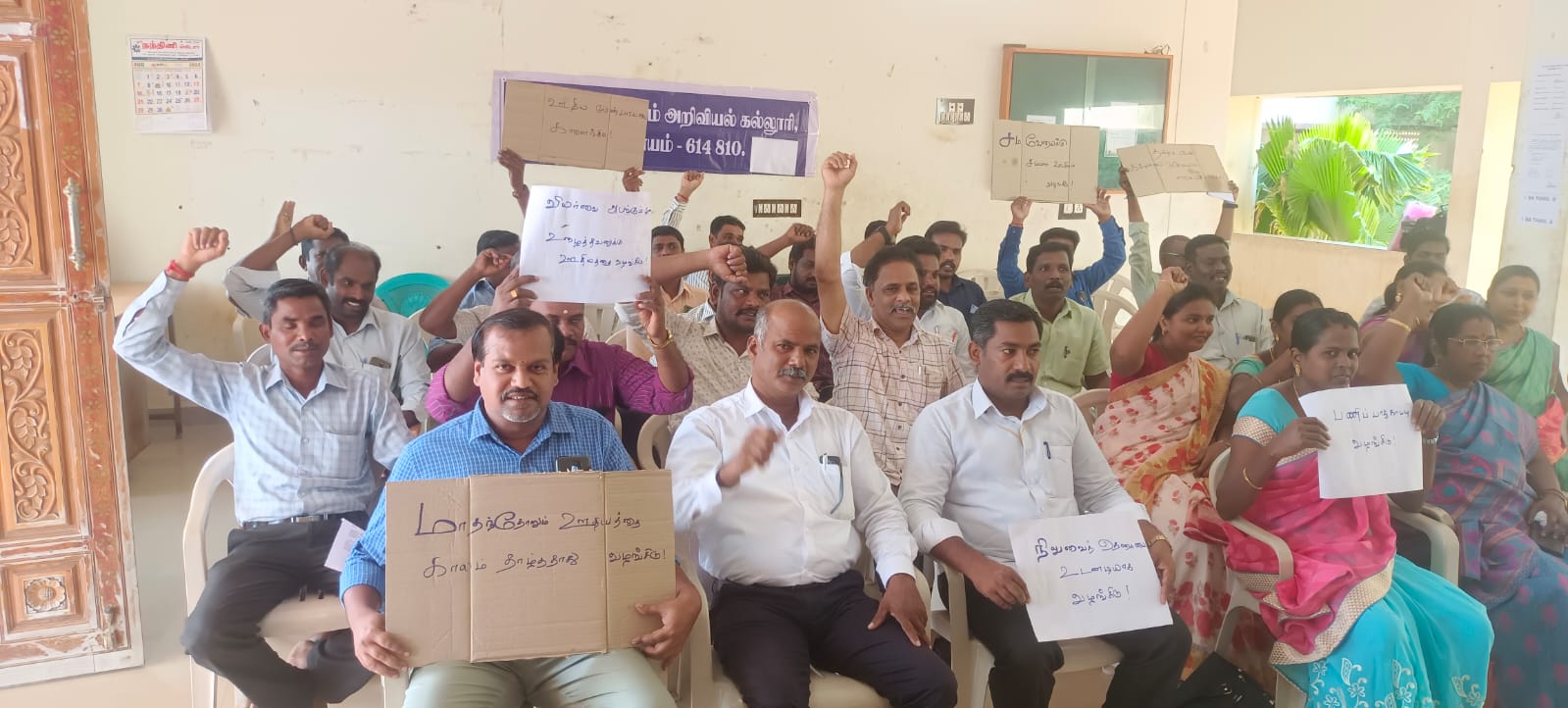 இந்த காலவரையற்ற உள்ளிருப்பு போராட்டத்திற்கு தலைமை தாங்கும் கு.அர்ஜுனன் மற்றும் கலந்துகொள்ளும் பேராசிரியர்கள் தெரிவித்தார்கள்.