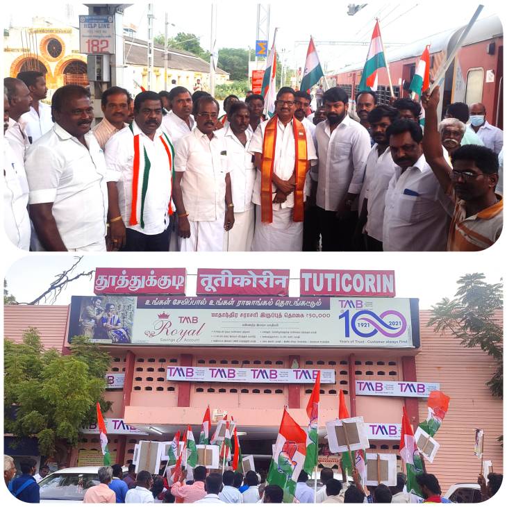 தமிழ்நாடு காங்கிரஸ் கமிட்டி தலைவர் கே.எஸ் அழகிரிக்கு தூத்துக்குடி ரயில் நிலையத்தில் தூத்துக்குடி மாவட்ட காங்கிரஸ் சார்பில் மிக பிரம்மாண்ட வரவேற்பு!!