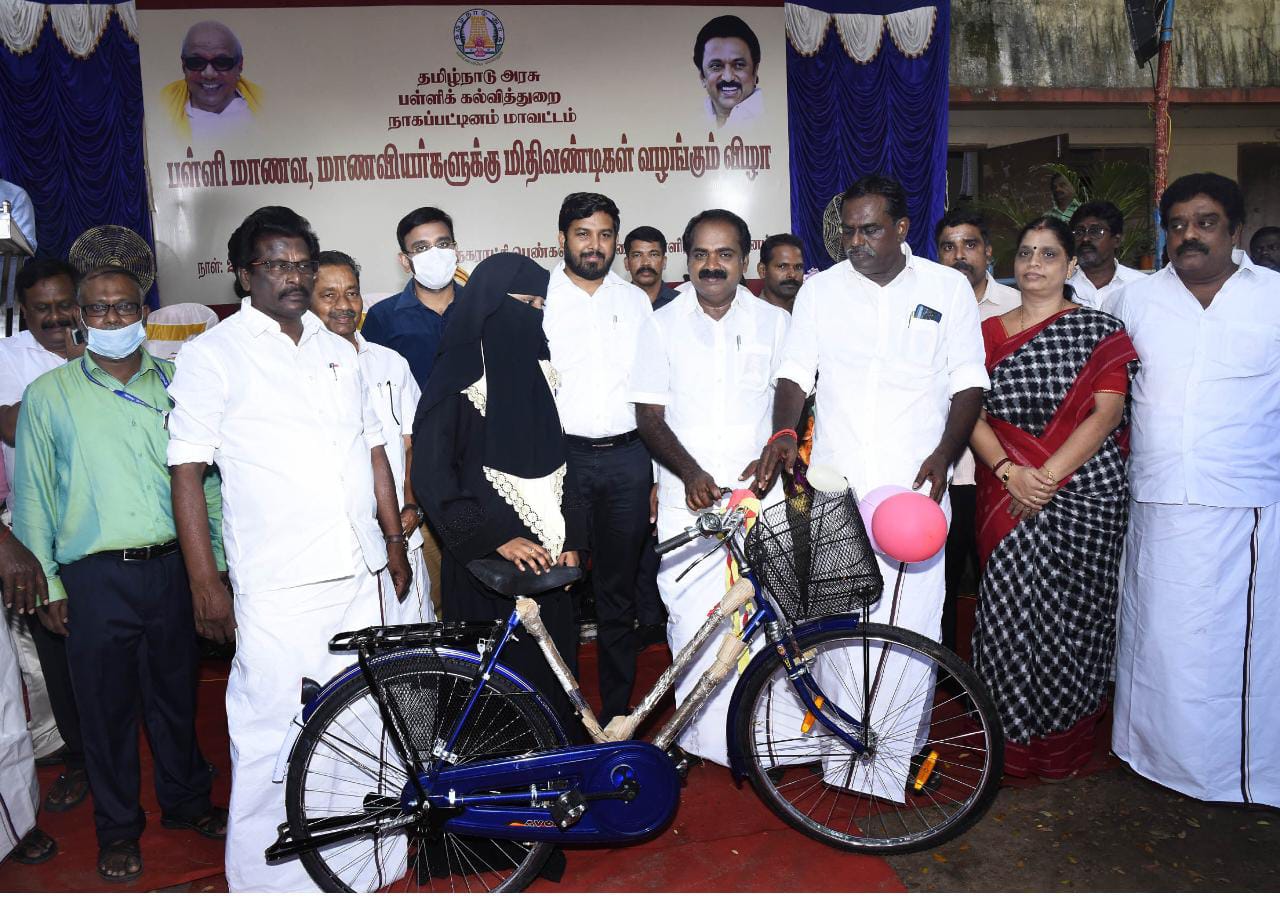 நாகப்பட்டினத்தில் பள்ளி மாணவ மாணவிகளுக்கு மிதிவண்டி வழங்கும் விழா