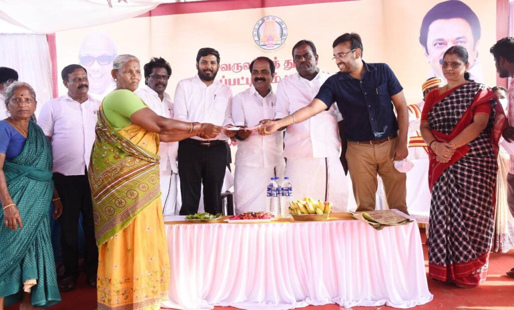 அதனைதொடர்ந்து, நாகப்பட்டினம் நகராட்சி சாமந்தான்பேட்டை கிராமத்தில் வருவாய் துறை சார்பில் 307 பயனாளிகளுக்கு சுமார் 9 கோடி மதிப்பிலான இலவச வீட்டுமனை பட்டாவினை மாண்புமிகு சுற்றுசூழல் காலநிலை மாற்றத்துறை மற்றும் இளைஞர் நலன், விளையாட்டு மேம்பாட்டு துறை அமைச்சர் அவர்கள் வழங்கினார்.