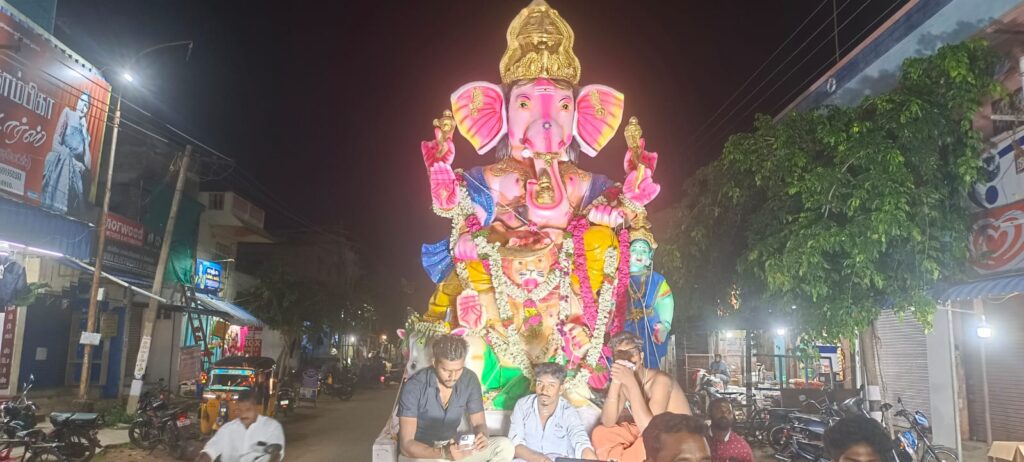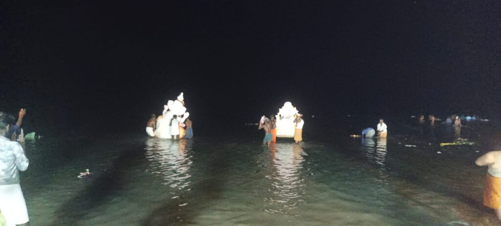 வேதாரண்யம் பகுதியில் 17 விநாயகர் சிலைகள் கடலில் கரைக்கப்பட்டன.