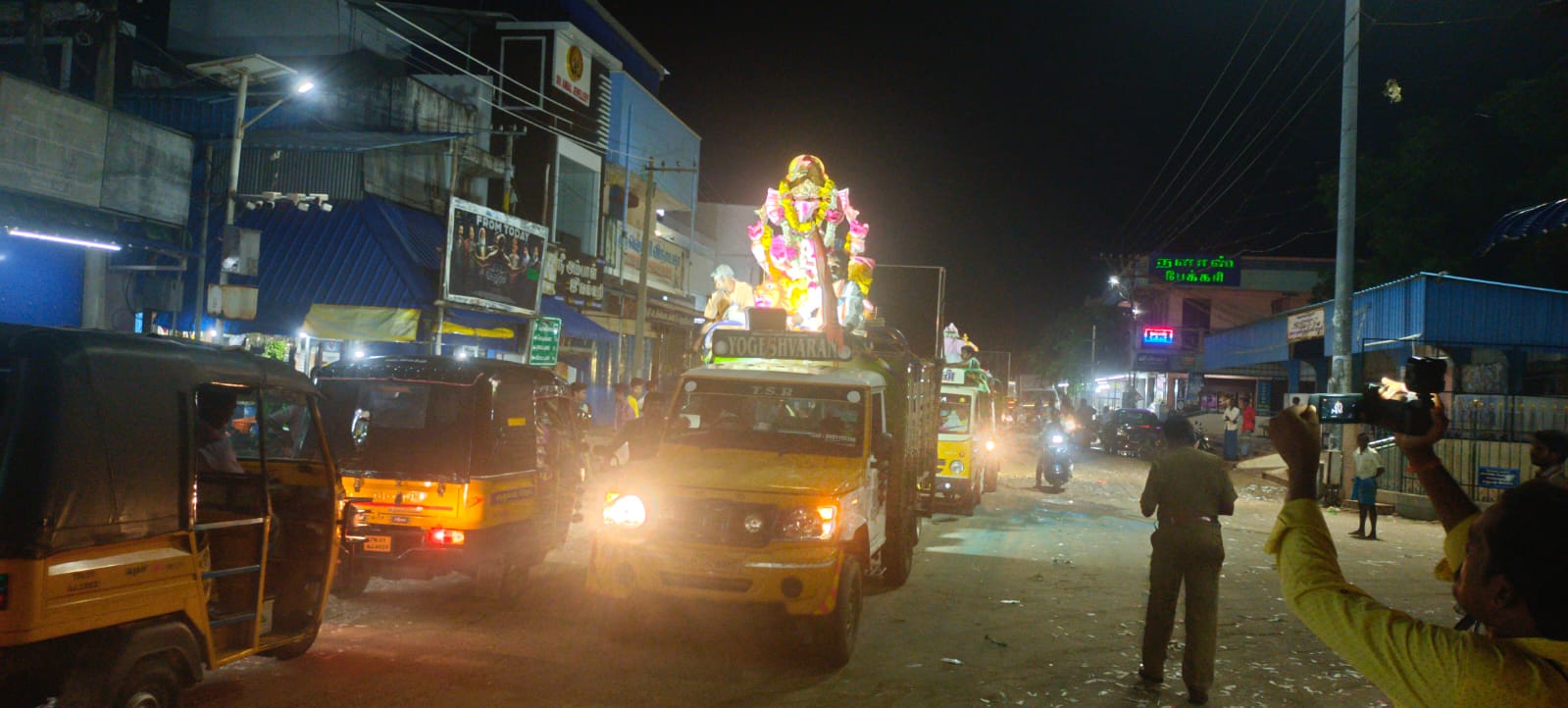 இரவு புறப்பட்ட ஊர்வலம் வேதாரண்யம் பிரதான வீதிகளில் வலம் வந்து சன்னதி கடலில் கரைக்கப்பட்டது. பாதுகாப்பு ஏற்பாடுகளை வேதாரண்யம் காவல் ஆய்வாளர் சுப்ரியா தலைமையிலான காவல்துறையினர் செய்திருந்தனர். இன்னும் வேதாரண்யம் காவல் சரதத்திற்கு உட்பட்ட பகுதிகளில் ஒன்பது விநாயகர் சிலைகள் பூஜை செய்யப்பட்டு வருகின்றன. இந்த சிலைகள் இன்றும் நாளையும் கரைக்கப்பட உள்ளது என்பது குறிப்பிடத்தக்கது.இந்த விநாயகர் ஊர்வலத்தில் ஏராளமானோர் கலந்து கொண்டனர்.