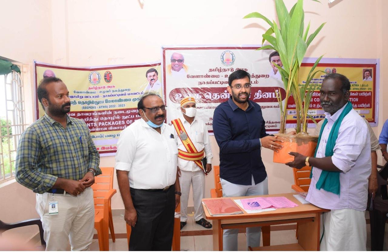 நாகப்பட்டினம் மாவட்டம்வேளாண்மை உதவி இயக்குநர் அலுவலகத்தில் வேளாண்மை மற்றும் உழவர் நலத்துறை சார்பில் “உலக தென்னை தினம்” விழா மாவட்ட ஆட்சித்தலைவர் அ.அருண்தம்புராஜ் தலைமையில் நடைபெற்றது.