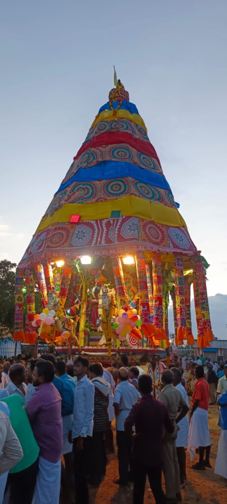 இந்த தேரோட்ட நிகழ்ச்சியில் சுற்று வட்டார பகுதிகளை சேர்ந்த மக்கள் கலந்து கொண்டு தேரை வடம்பிடித்து இழுத்து வந்தனர்.