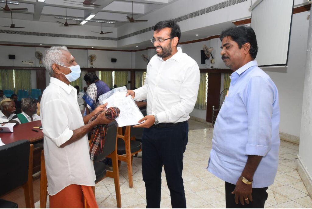 அதனைத்தொடர்ந்து வாராந்திர மக்கள் குறைதீர்க்கும் நாள் கூட்டத்தில் பயனாளிகளுக்கு முதியோர் உதவித்தொகை, மாதாந்திர உதவித்தொகைக்கான