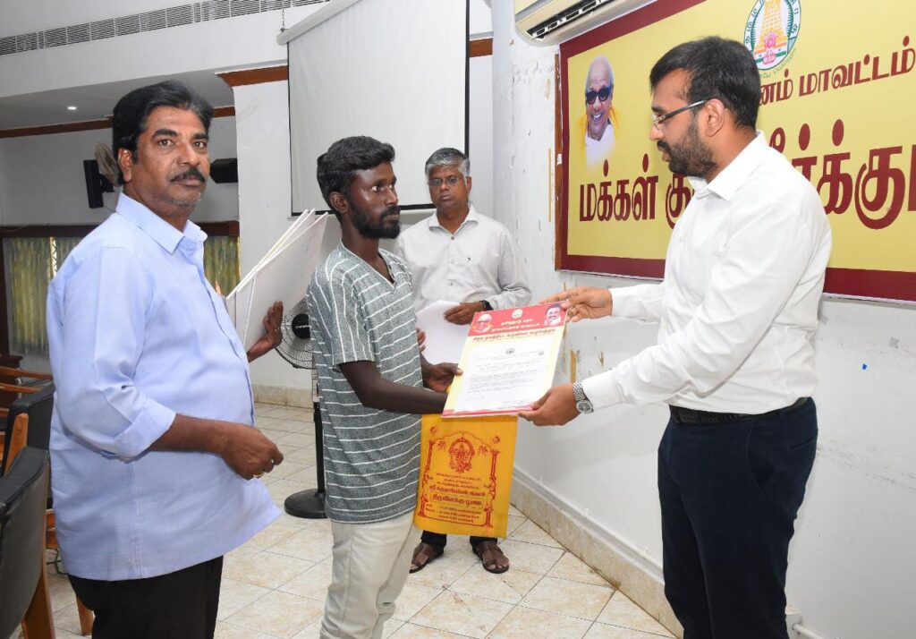 ஆணையினையும், சீர்காழி வட்டம், பள்ளிவாசல் தெரு புதுப்பட்டிணம் கிராமத்தை சேர்ந்த முகமது யாசர் த/பெ அன்வர் அலி என்பவர் சௌதி அரேபியா நாட்டில் இறந்ததற்காக தமிழக அரசிடமிருந்து வரப்பெற்ற இழப்பீடுத்தொகை ரூ.30,612 க்கான காசோலையினை அவரது தந்தையார் அன்வர் அலி என்பவரிடம் மாவட்ட ஆட்சித்தலைவர் வழங்கினார்.
