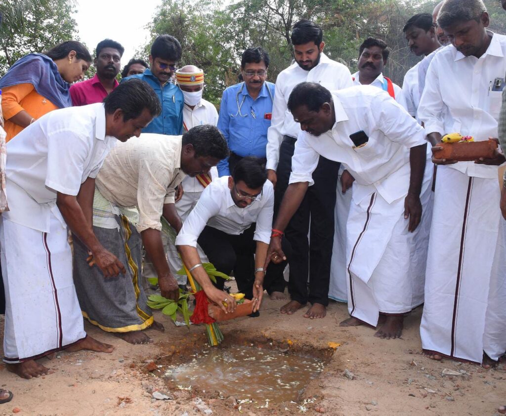 நாகப்பட்டினம் செப்டம்பர் 17 நாகப்பட்டினம் மாவட்டம் திட்டச்சேரி பேரூராட்சியில் 15 வது நிதிகுழு சுகாதார மானியத்தின் கீழ் புதிய அரசு ஆரம்ப சுகாதார நிலைய கட்டடம் கட்டும் பணிக்கான பூமி பூஜையினை மாவட்ட ஆட்சித்தலைவர் அ.அருண்தம்புராஜ் இன்று தொடங்கி வைத்தார். தமிழ்நாடு மீன் வளர்ச்சி கழக தலைவர் என்.கௌதமன் நாகப்பட்டினம் சட்டமன்ற உறுப்பினர் ஜெ.முகமது ஷா நவாஸ் உடன் கலந்து கொண்டனர்.