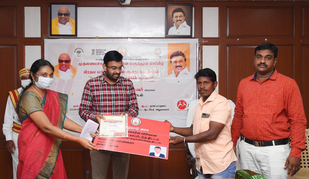 நாகப்பட்டினம் மாவட்டம் ஆட்சியர் அலுவலகத்தில் மருத்துவ மற்றும் மக்கள் நல்வாழ்வு துறை சார்பில் முதலமைச்சரின் விரிவான மருத்துவ காப்பீட்டுத்திட்டம் பிரதம மந்திரி மக்கள் ஆரோக்கிய திட்டம் ஐந்தாம் ஆண்டு தொடக்க விழாவினை மாவட்ட ஆட்சித்தலைவர் அ.அருண்தம்புராஜ் தொடங்கி வைத்தார்.