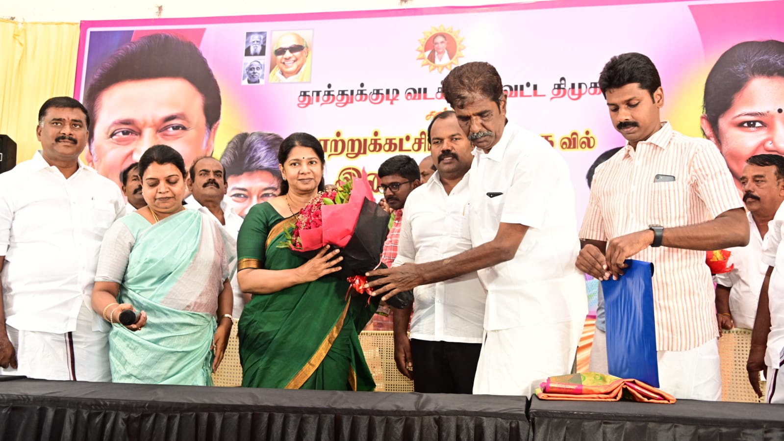 தூத்துக்குடி கலைஞர் அரங்கில், தூத்துக்குடி வடக்கு மாவட்ட திமுக சார்பில் மாற்றுக்கட்சியினர் தி.மு.கவில் இணையும் விழா நடைபெற்றது. இந்த விழாவில் கலந்துகொண்டு புதிதாகக் கழகத்தில் இணைந்துள்ளவர்களை திமுக மகளிரணி செயலாளர் கனிமொழி கருணாநிதி எம்.பி.வாழ்த்தினார்