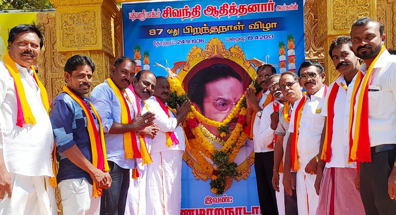 தினத்தந்தி அதிபர் பத்மஸ்ரீ டாக்டர் சின்னையா பா.சிவந்தி ஆதித்தனார் அவர்களின் 87 வது பிறந்த தினத்தை முன்னிட்டு தூத்துக்குடி மாவட்ட சமத்துவ மக்கள் கழகம் சார்பில் மாவட்ட செயலாளர் மாலைசூடி அற்புதராஜ் தலைமையில் மாநில வர்த்தக அணி துணைச் செயலாளர் ரவி சேகர் தூத்துக்குடியில் சிவந்தி ஆதித்தனார் அவர்களின் உருவப் படத்திற்கு மாலை அணிவித்து மரியாதை செலுத்தினார்