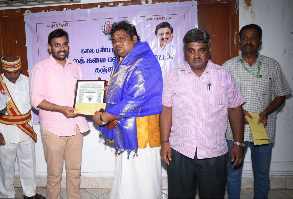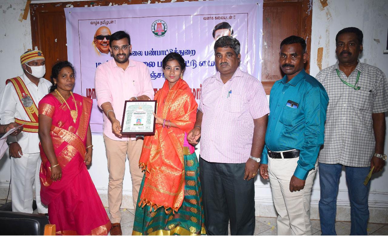 இக்கூட்டத்தில் கலை பண்பாட்டு துறை சார்பில் மாவட்டக் கலை மன்றத்தில் பரதநாட்டியம், நாட்டுப்புற நடனம், தப்பாட்டக் கலைஞர், நாட்டுப்புற பாடகர் , பரதநாட்டிய கலைஞர், நாதஸ்வர கலைஞர், வயலின் இசைக்கலைஞர்,நாடக கலைஞர், உடுக்கை பக்தி பாடல் போன்றவைகளில் சிறப்பாக பணியாற்றிய கலைஞர்களுக்கு கலை இளமணி , கலை வளர்மணி, கலை சுடர்மணி, கலை நன்மணி, கலை முதுமணி போன்ற கலை விருதுகளை மாவட்ட ஆட்சித்தலைவர் அ.அருண்தம்புராஜ் வழங்கினார்.