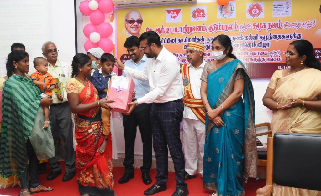 நாகப்பட்டினம் செப்டம்பர் 28 நாகப்பட்டினம் மாவட்ட ஆட்சியர் அலுவலகத்தில் ஜே.ஆர்.டி டாடா நினைவு விருது சார்பாகவும், மருத்துவம் மற்றும் மக்கள் நல்வாழ்வுத்துறை, ஒருங்கிணைந்த குழந்தை வளர்ச்சி திட்டம் சார்பாகவும் கர்ப்பிணி தாய்மார்கள் முன்பருவ கல்வி குழந்தைகளுக்கு ஊட்டச்சத்து பெட்டகம் வழங்கும் விழா மற்றும் அரசு சாரா நிறுவனங்களுக்கு மக்கள் தொகை பெருக்கம் மற்றும் குடும்ப நலம் தொடர்பான விழிப்புணர்வு கருத்தரங்கம் மாவட்ட ஆட்சித் தலைவர் அ.அருண்தம்புராஜ் தலைமையில் இன்று நடைபெற்றது.