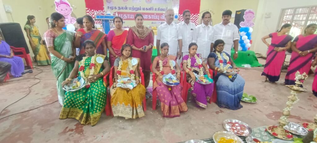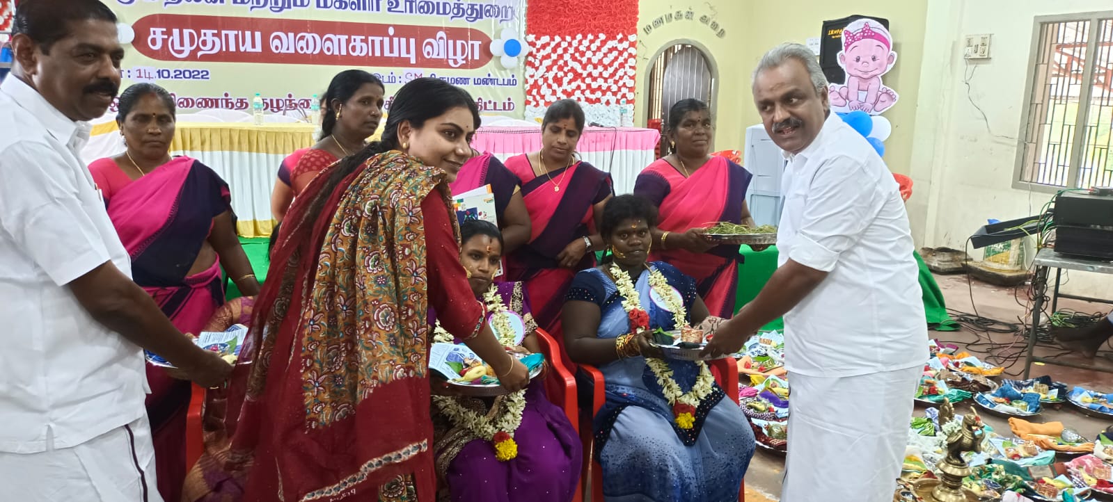 ஒருங்கிணைந்த குழந்தை வளர்ச்சி பணிகள் திட்டம் மற்றும் சமூக நலன் மற்றும் மகளிர் உரிமை துறை நடத்திய சமுதாய வளைகாப்பு விழா நடைபெற்றது. இந்த விழாவிற்கு வேதாரணியம் கோட்டாட்சியர் ஜெயராஜ் பவுலின் தலைமை தாங்கினார். மேலும் வேதாரணியம் நகர்மன்றத் தலைவர் மா.மீ.புகழேந்தி,
