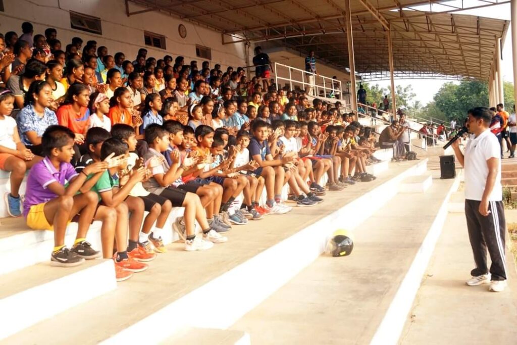 நெல்லை பாளையங்கோட்டையில் உள்ள அண்ணா விளையாட்டு மைதானத்தில் இன்று காலை மாணவ மாணவிகள் விளையாட்டு பயிற்சியில் ஈடுபட்டிருந்தபோது நெல்லை மாநகர சட்டம் ஒழுங்கு காவல் துணை கமிஷ்னர் ஸ்ரீனிவாசன் மாணவ மாணவிகளிடையே சாலைப் பாதுகாப்பு மற்றும் குற்ற நிகழ்வுகள் தங்கள் கண்முன் நடைபெற்றால் உடனே தனது அலைபேசிக்கு தகவல் தெரிவிக்கும்படி விளையாட்டு வீரர்,வீராங்கனைகளிடம் விழிப்புணர்வு உரையாற்றினார்கள் இந்நிகழ்ச்சியில் 200 க்கும் மேற்பட்ட விளையாட்டு வீராங்கனைகள் கலந்து கொண்டு பயன்பெற்றார்கள்.