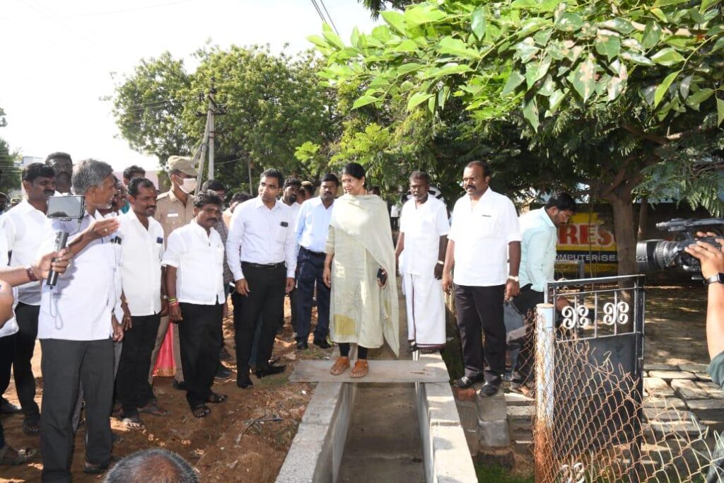 தூத்துக்குடி வடகிழக்கு பருவமழை தொடங்கியதையொட்டி தூத்துக்குடி மாநகராட்சி பகுதிகளில் புதிதாக கட்டப்படுள்ள மழைநீர் வடிகால் கட்டுமான பணிகள் நடைபெற்று வரும் கூட்டத்து மாடசாமி கோவில் ரஹ்மத்நகர், எழில்நகர், பிரையண்ட்நகர், முத்துகிருஷ்ணாநகர், முருகேசன்நகர், திரவியரத்தினம் நகர், குறிஞ்சிநகர், அம்பேத்கார்நகர், உள்ளிட்ட பல பகுதிகளில் ஆய்வு மேற்கொண்டு ஜெயராஜ் ரோடு பகுதியில் அமைக்கப்பட்டுள்ள நம்ம தூத்துக்குடி செல்பி பாயிண்டை கனிமொழி எம்.பி திறந்து வைத்தார்.