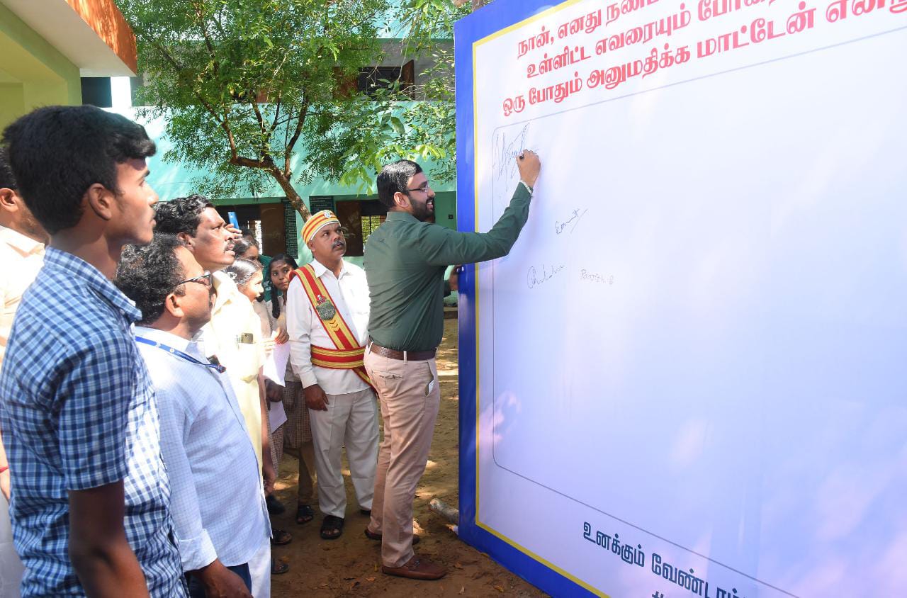அதனை தொடர்ந்து, நான், எனது நண்பர்கள் மற்றும் எனது குடும்பத்தினர்கள் உள்ளிட்ட எவரையும் போதைப்பொருட்களை பயன்படுத்த ஒருபோதும் அனுமதிக்க மாட்டேன் என்று உறுதி அளிக்கிறேன் என்ற கையெழுத்து இயக்கத்தினையும் மாவட்ட ஆட்சித்தலைவர் அவர்கள் தொடங்கி வைத்தார்.