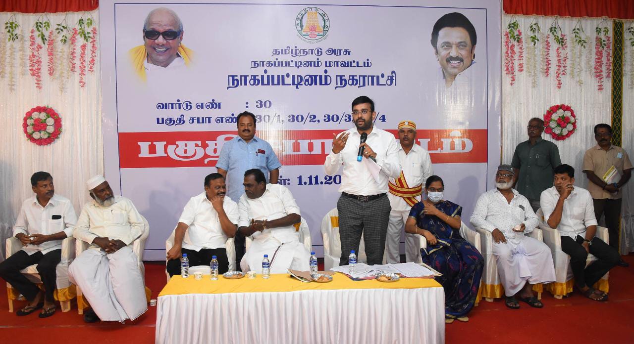 நாகப்பட்டினம் நகராட்சி 30 ஆவது வார்டில் உள்ளாட்சிகள் தினத்தை முன்னிட்டு நடைபெற்ற பகுதிசபா கூட்டத்தில் மாவட்ட ஆட்சித்தலைவர் அ.அருண்தம்புராஜ் மற்றும் தமிழ்நாடு மீன்வளர்ச்சி கழக தலைவர் என்.கௌதமன் சிறப்பு பார்வையாளராக கலந்து கொண்டனர்.