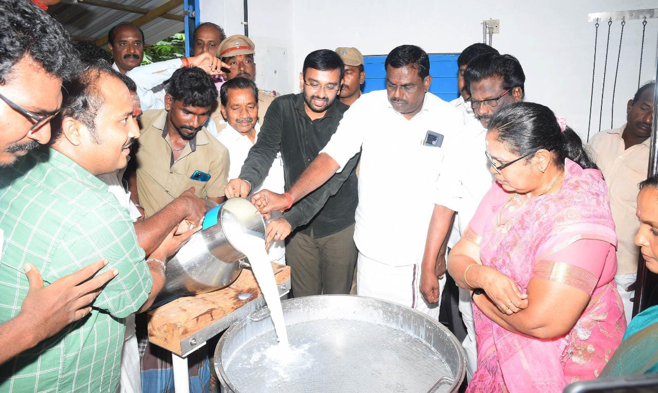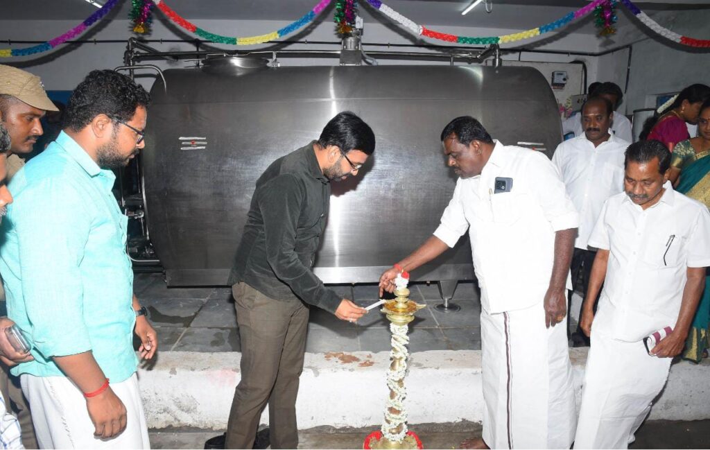 நாகப்பட்டினம் நவம்பர் 4 நாகப்பட்டினம் மாவட்டம் கீழையூர் ஊராட்சி ஒன்றியம் பிரதாபராமபுரம் ஊராட்சியில் ஆவின் நிறுவனத்தின் புதிய குளிர்விப்பான் நிலையத்தினை மாவட்ட ஆட்சித்தலைவர் அ.அருண்தம்புராஜ் இன்று குத்துவிளக்கேற்றி திறந்து வைத்தார். தமிழ்நாடு மீன்வளர்ச்சி கழக தலைவர் என்.கௌதமன் தமிழ்நாடு தாட்கோ கழக தலைவர் உ.மதிவாணன் கீழ்வேளுர் சட்ட மன்ற உறுப்பினர் வி.பி.நாகை மாலி ஆகியோர் உடன் உள்ளனர்.