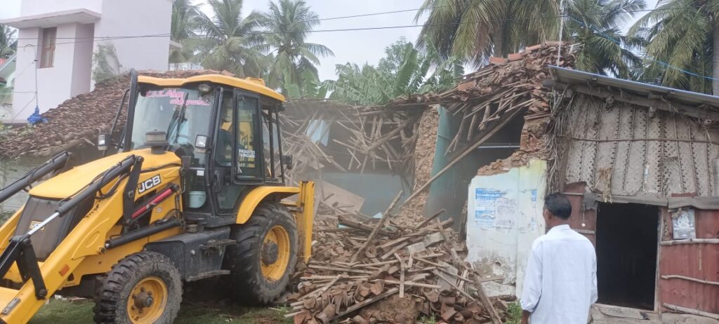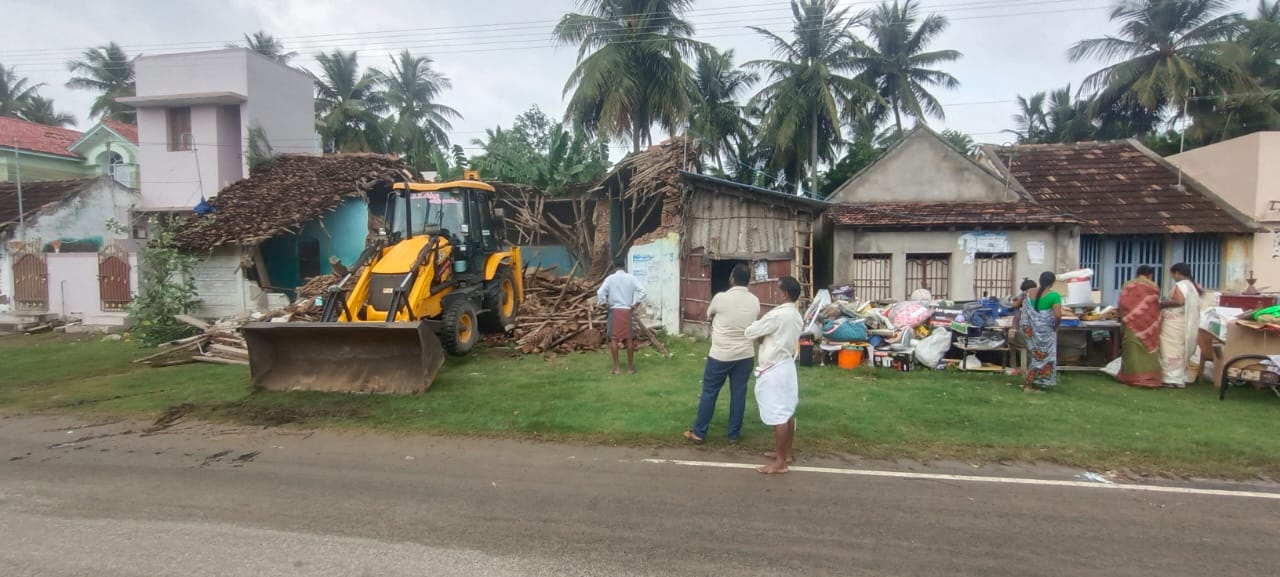நாகப்பட்டினம் மாவட்டம் வேதாரண்யத்தில் தெற்கு வீதியில் அருள்மிகு வேதாரண்யேஸ்வரர் சுவாமி திருக்கோவிலுக்கு சொந்தமான 18 சென்ட் மனைப் பகுதியில் ஆக்கிரமிப்பு செய்து குடியிருந்த குமாரசாமி என்பவரின் ஆக்கிரமிப்பு ஓட்டு கட்டிடம்