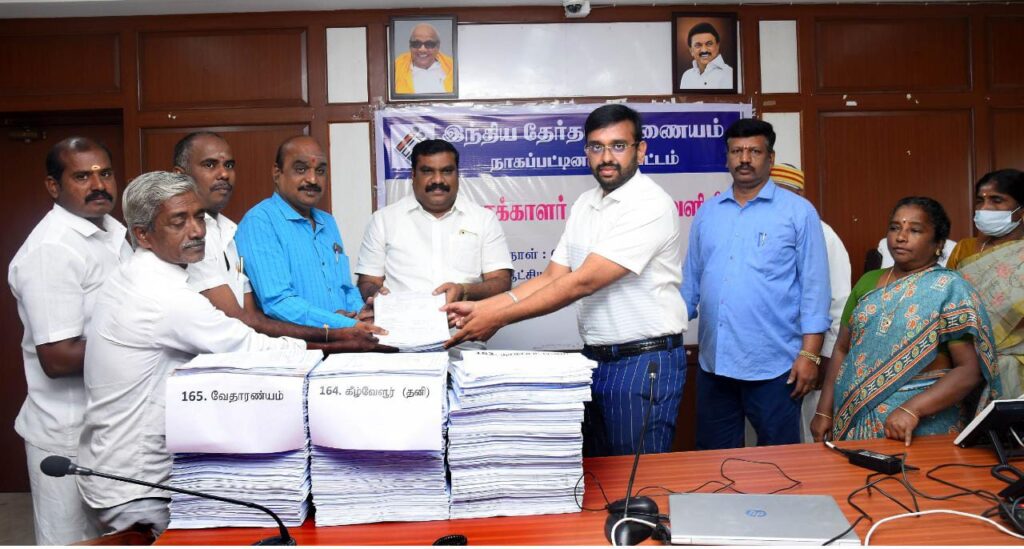 நாகப்பட்டினம் மாவட்டத்தில் 2023 ஜனவரி 1-ஆம் தேதியை தகுதி நாளாக கொண்டு வரைவு வாக்காளர் பட்டியல் இன்று காலை 10.00 மணி அளவில் மாவட்ட ஆட்சியர் அலுவலகத்தில் மாவட்ட தேர்தல் அலுவலர் மற்றும் மாவட்ட ஆட்சியர் அ. அருண் தம்புராஜ் அவர்களால் வெளியிடப்பட்டது. இந்நிகழ்ச்சியில் அங்கீகரிக்கப்பட்ட கட்சி பிரமுகர்கள் கலந்துகொண்டனர். மேலும், வரைவு வாக்காளர் பட்டியல் வாக்காளர் பதிவு அலுவலர் அலுவலகங்கள், உதவி வாக்காளர் பதிவு அலுவலர் அலுவலகங்கள், வட்டார வளர்ச்சி அலுவலகங்கள் மற்றும் அனைத்து வாக்குச்சாவடி மையங்களிலும் இன்று வெளியிடப்பட்டது.