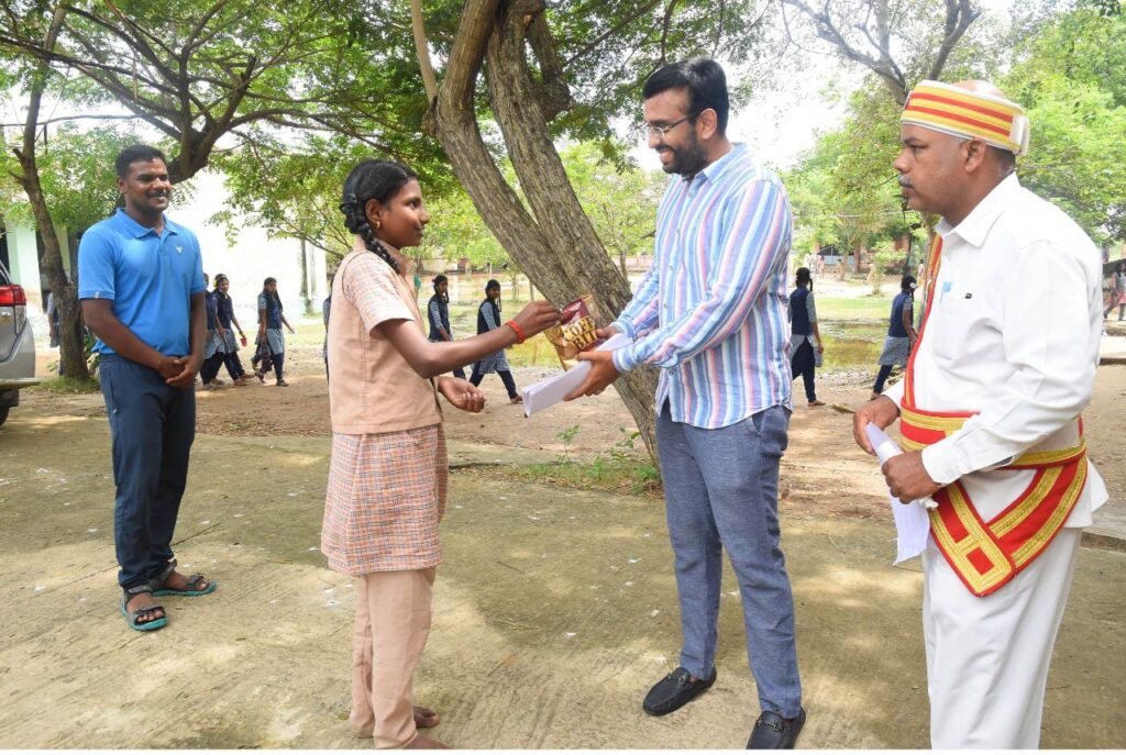 மேலும் அக்கரைப்பேட்டை அரசினர் மேல்நிலை பள்ளி வளாகத்தில் கேட்பாரற்று கிடந்த தங்க டாலரை எடுத்து வகுப்பாசிரியரிடம் ஒப்படைத்த ஆறாம் வகுப்பு பயிலும் அனுஸ்ரீ என்ற மாணவியை மாவட்ட ஆட்சித்தலைவர் அ.அருண்தம்புராஜ் பாராட்டி இனிப்பு வழங்கினார்