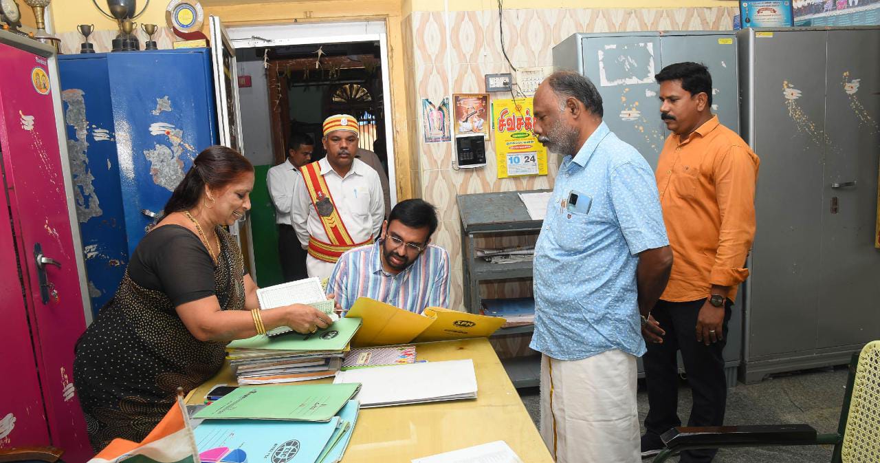 நாகப்பட்டினம் நகராட்சி பகுதியில் உள்ள தேசிய மேல்நிலை பள்ளி, சிஎஸ்ஐ பள்ளி மற்றும் அக்கரைப்பேட்டை அரசினர் மேல்நிலைப் பள்ளியில் தேர்ச்சி விகிதம் குறித்து மாவட்ட ஆட்சித்தலைவர் அ.அருண்தம்புராஜ் இன்று ஆய்வு மேற்கொண்டார்.நாகப்பட்டினம் நவம்பர் 10 நாகப்பட்டினம் நகராட்சி பகுதியில் உள்ள தேசிய மேல்நிலை பள்ளி சி;எஸ்ஐ பள்ளி மற்றும் அக்கரைப்பேட்டை அரசினர் மேல்நிலைப் பள்ளியில் ஆய்வு மேற்கொண்டு பள்ளியில் தேர்ச்சி விகித்தை அதிகரி;க்க ஆசிரிய, ஆசிரியர்களுக்கு மாவட்ட ஆட்சித்தலைவர் அ.அருண்தம்புராஜ் இன்று அறிவுறுத்தினார்.