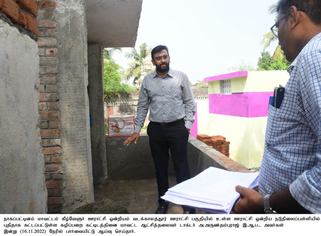 கீழ்வேளுர் ஊராட்சி ஒன்றியத்திற்குட்பட்ட வெண்மணி ஊராட்சியில் உள்ள நியாய விலை கடையில் பொதுமக்களுக்கு வழங்கப்படும் பொருட்களின் தரம் குறித்தும், அருகில் உள்ள நூலகத்திலும் ஆய்வு செய்தார். வடகாலத்துர் ஊராட்சியில் அனைத்து கிராம அண்ணா மறுமலர்ச்சி திட்டத்தின் கீழ் ரூ.4.71 இலட்சம் மதிப்பீட்டில் புதிதாக கட்டப்பட்டுள்ள சமத்துவமயானத்தினையும் பார்வையிட்டு, வடகாலத்துர் ஊராட்சி ஒன்றிய நடுநிலைப்பள்ளியில் புதிதாக கட்டப்பட்டுள்ள கழிப்பறை வசதிகளையும், புதிய நெல் களம் அமைக்கப்பட்டதையும் பார்வையிட்டு ஆய்வு செய்தார், தொடர்ந்து அக்கரை வீதி தெருவில் 18 வயது பூர்த்தியடைந்த நபர்கள் வாக்காளர் பட்டியலில் பெயர் சேர்த்தல் தொடர்பாக வீட்டிற்கே சென்று மாவட்ட ஆட்சித் தலைவர் அவர்கள் ஏற்படுத்தினார்