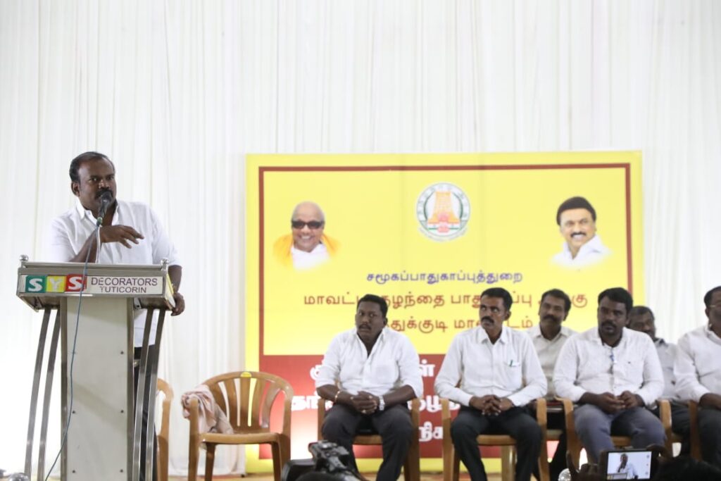 நிகழ்ச்சி நிறைவில் கலந்து கொண்ட மாநகராட்சி மேயர் ஜெகன் பெரியசாமி பேசுகையில் கடந்த 14ம் தேதி குழந்தைகள் தினம் கொண்டாடப்பட்டது இருப்பினும் அனைவருக்கும் வாழ்த்துக்களை தெரிவித்துக் கொள்கிறேன். மாநகராட்சி பகுதிகளில் பல்வேறு பள்ளிகள் இயங்கி வருகின்றன. பல்வேறு பணிகளும் நடைபெற்று வருகின்றது. கலைஞர் ஆட்சியில் செய்த சாதனைகளை போல் தமிழகம் முதலமைச்சர் ஸ்டாலின் பல உதவிகளை சமூகநலத்துறை மூலம் செய்து கொடுக்கப்படுகிறது. அத்துறையின் அமைச்சராக கீதாஜீவன் பணியாற்றி வருகிறார். இந்த அமைப்பிற்கு தலைவராக செயல்படும் ரூபன் கிஷோர், பொறுப்புக்கு வந்த பிறகு ஜெயிலில் வாழ்ந்தது போல் வாழ்க்கையில் இருந்த குழந்தைகளுக்கு மறுவாழ்வு கிடைத்துள்ளது. நல்லமுறையில் அனைவரும் படிக்க வேண்டும். அதற்கு அரசும் முதலமைச்சரும் உதவி செய்வார்கள் எல்லோரிடமும் ஒவ்வொரு வகையான திறமைகள் உண்டு அதுபோல் உங்களிடமும் உண்டு சில குறைபாடுகள் தெரிவிப்பதற்கு 1098 எண் உள்ளது. மக்கள் பணி ஆற்றுவதற்கு என்று நாங்களும் இருக்கிறோம். உங்களுக்கு தேவையான சேவைகளை செய்து கொடுப்போம். இந்த இல்லங்களில் உள்ள குழந்தைகள் அரசு தேர்வில் 10 மற்றும் 12ம் வகுப்பு தேர்ச்சி பெற்று அதிக மதிப்பெண் பெறுபவர்களுக்கு ஊக்கப்படுத்தும் வகையில் நினைவு பரிசும் ஊக்கத் தொகையும் மறைந்த எனது தந்தை பெரியசாமி பெயரில் வழங்க வேண்டும் என்று என்னிடம் கோரிக்கை வைத்துள்ளனர். வரும் கல்வியாண்டு முதல் நினைவு பரிசும் ஊக்கத்தொகையும் வழங்கப்படும் என்று உறுதியளிக்கிறேன். திறமையை வளர்த்து கொண்டு நாட்டிற்கும் வீட்டிற்கும் பெருமை சேர்க்க வேண்டும் என்றார்.