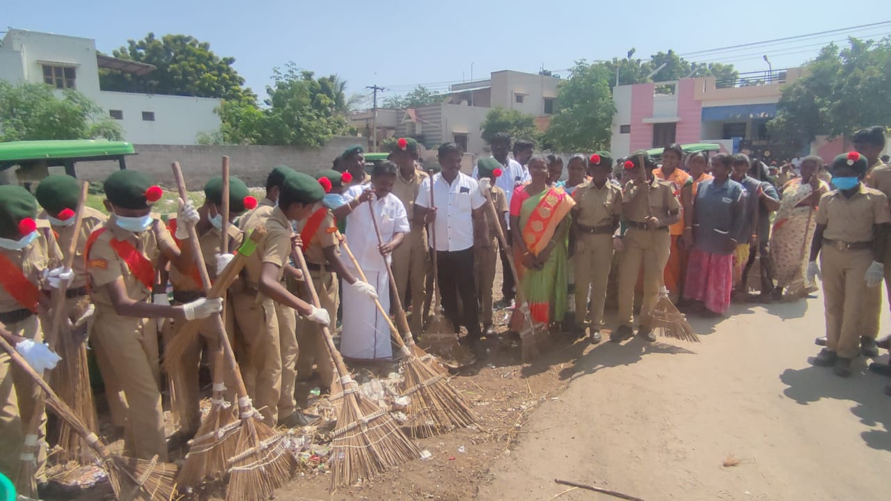 தூத்துக்குடி மாவட்டம் ஒட்டப்பிடாரம் சட்டமன்ற தொகுதிக்குட்பட்ட திரேஸ்நகர் பகுதியில் தூய்மை பாரத இயக்கம் மற்றும் விவிடி நினைவு பள்ளி என்சிசி மாணவ மாணவிகள் மாப்பிள்ளையூரணி ஊராட்சி தூய்மை காவலர்கள் பங்கேற்ற தூய்மை பணி நிகழச்சிக்கு மாப்பிள்ளையூரணி ஊராட்சி மன்ற தலைவரும் கூட்டுறவு கடன்சங்க தலைவருமான திமுக கிழக்கு ஒன்றிய செயலாளர் சரவணக்குமார் தலைமை வகித்தார். தூய்மை பணியை தொடங்கி வைத்து சண்முகையா எம்.எல்.ஏ பேசுகையில் நம்முடைய வீட்டை எப்படி சுத்தமாக வைத்து பாதுகாத்து கொள்கிறோமோ அது போல் இந்த கிராமத்தை என்சிசி மாணவ மாணவிகள் தூய்மையாக வைத்துக் கொள்வதற்கு பணியாற்ற வேண்டும். இதுபோன்ற சமூக பணிகள் மூலம் உங்களுக்கான மதிப்பும் மரியாதையும் கிடைக்கும் அதே வேளையில் படிக்கும் காலத்திலேயே ஐஏஎஸ் ஐபிஎஸ் டாக்டர் உள்ளிட்ட உயர் பதவியை அடைய வேண்டும். என்ற இலக்காக லட்சியபாதையை வகுத்துக்கொள்ள வேண்டும் என்று மாணவ மாணவிகளுக்கு அறிவுரை வழங்கினார்.