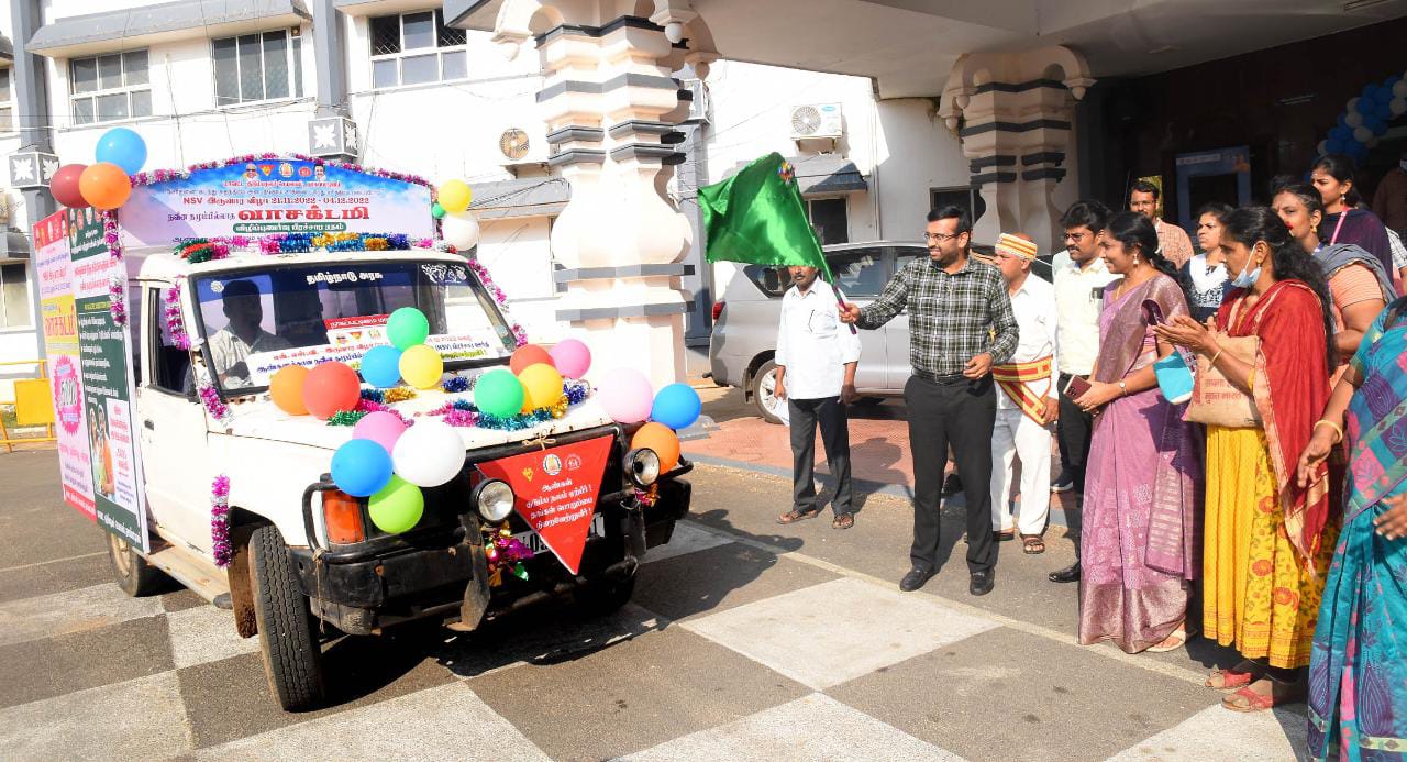 நாகப்பட்டினம் மாவட்ட குடும்ப நல செயலகம் சார்பில் சோதனை கடந்து சுதந்திரம் அடைந்தோம், சாதனை புரிந்து சரித்திரம் படைப்போம் என்ற Nளுஏ இரு வார விழா 21.11.2022 முதல் தொடங்கப்பட்டு 04.12.2022 வரை நடைபெற உள்ளதை தொடர்ந்து ஆண்களுக்கான நவீன தழும்பில்லாத வாசகிடமி நடத்துவதற்கான விழிப்புணர்வு பிரச்சார செய்யும் வாகனத்தினை விழிப்புணர்வு ஏற்படுத்த இன்று முதல் தொடங்கப்பட்டுள்ளது.