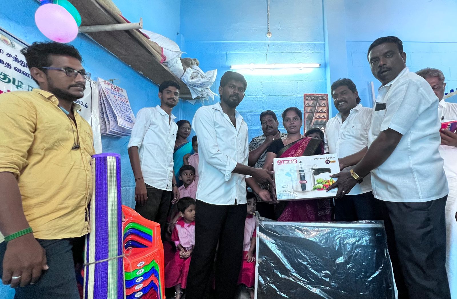 சேப்பாக்கம் திருவல்லிக்கேணி சட்ட மன்ற உறுப்பினரும், திமுக மாநில இளைஞரணி தலைவருமான உதய நிதி ஸ்டாலின் பிறந்த நாளை முன்னிட்டு தூத்துக்குடி வடக்கு மாவட்டம் 12வது வார்டு சார்பாக ஸ்டேட் பாங்க் காலனி உள்ள அங்கன்வாடியில் பயிலும் குழந்தைகளுகாக சேர் , கரும் பலகை, குக்கர், பாய் மற்றும் உபயோக பொருட்கள் வழங்கப்பட்டது.