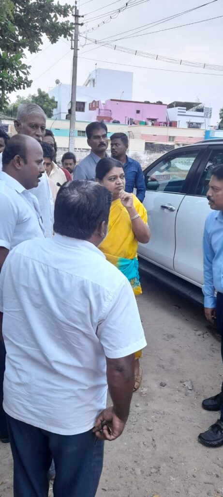உடன் மாநகராட்சி உதவி செயற்பொறியாளர் சரவணன், மாநகர திமுக செயலாளர் ஆனந்தசேகரன், பகுதி செயலாளர் ராமகிருஷ்ணன், வட்ட செயலாளர் சுரேஷ் பிரதிநிதிகள் ரஜினிமுருகன், முத்து, சதிஷ்குமார், முருகன், நடராஜன், மற்றும் அல்பட், மணி, உள்பட பலர் சென்றனர்.