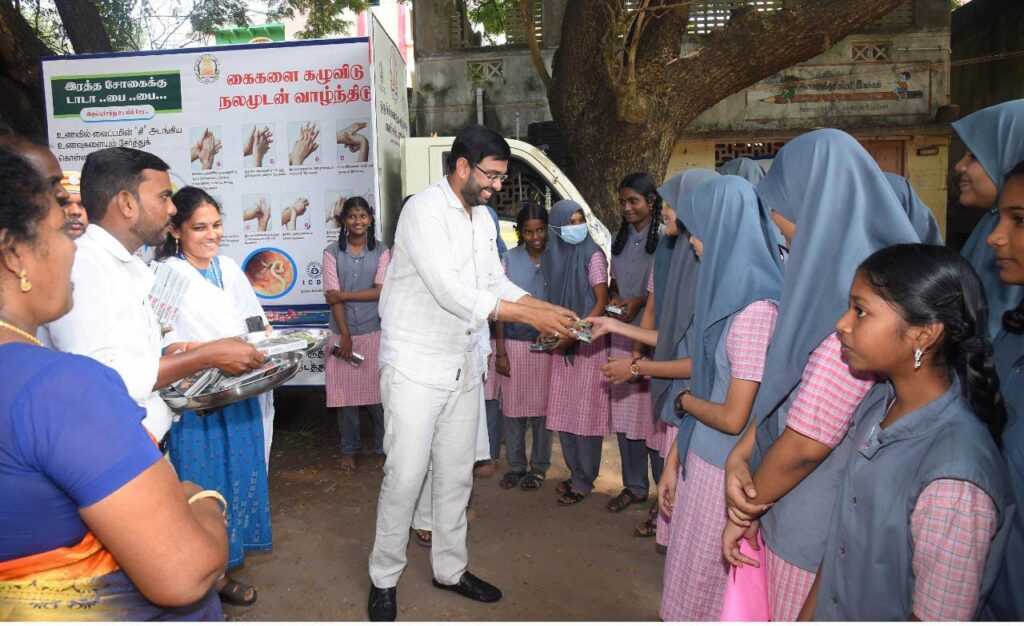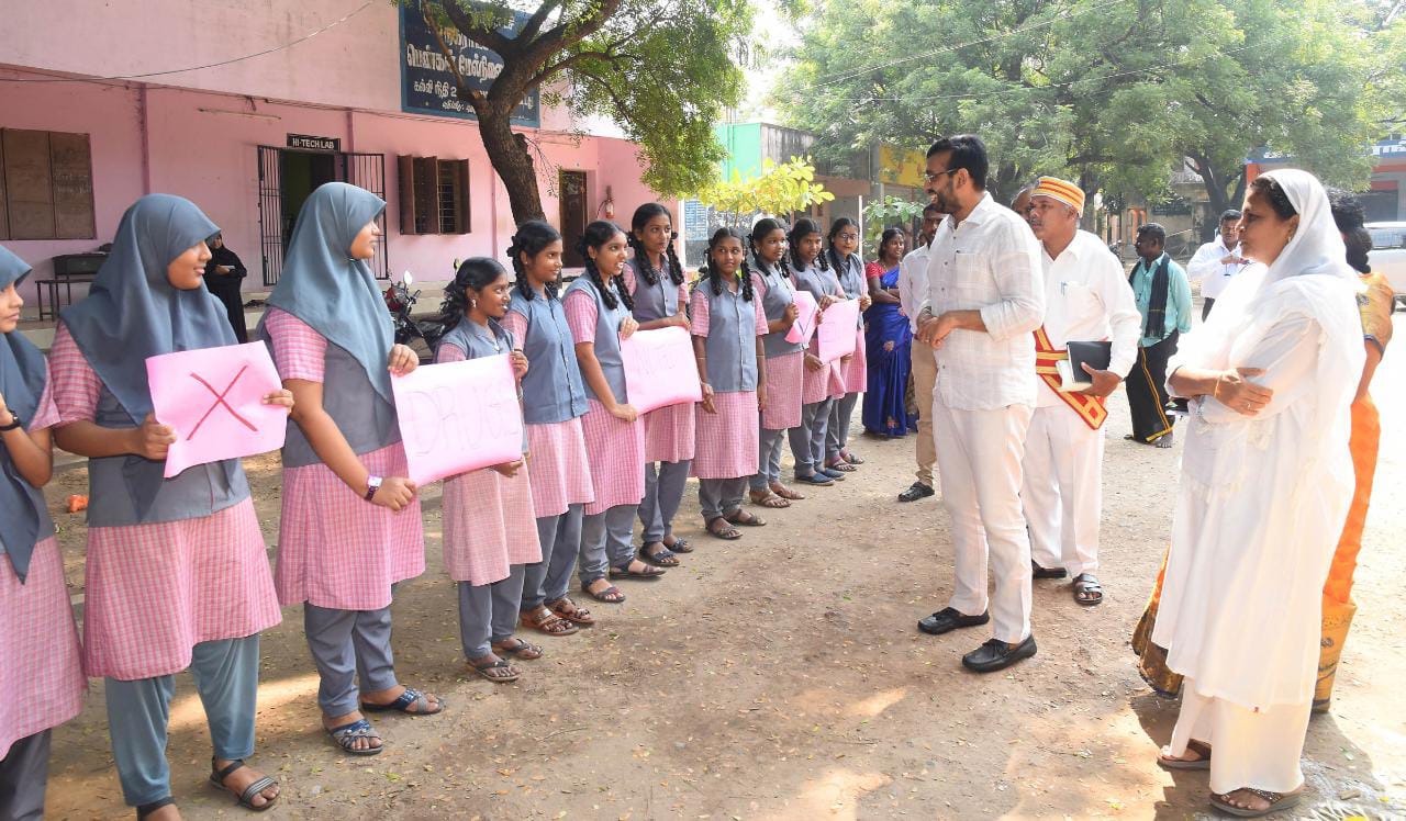 நாகப்பட்டினம் மாவட்டத்தில் சர்வதேச பெண்களுக்கு எதிரான வன்முறைகள் ஒழிப்பு வாரத்தை முன்னிட்டு மாவட்ட சமூக நலன் மற்றும் மகளிர் உரிமை துறை சார்பில் நகராட்சி பெண்கள் மேல்நிலைப்பள்ளி மாணவிகள் பெண்களுக்கு எதிரான வன்முறைகள் ஒழிப்பு விழிப்புணர்வு ஏற்படுத்தியதை மாவட்ட ஆட்சித் தலைவர் அ.அருண்தம்புராஜ் இன்று பார்வையிட்டார்