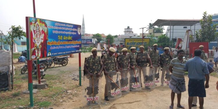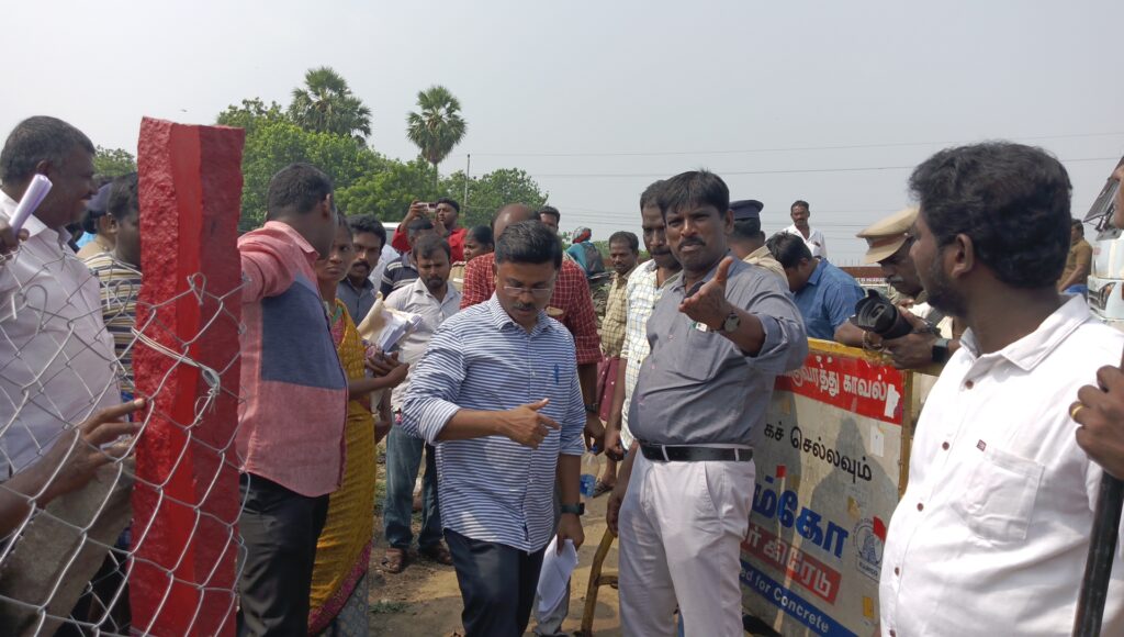 தூத்துக்குடி அருகே உள்ள கோரம்பள்ளத்தில் 52 சென்ட் இடத்தை கிராம மக்களும் தனிநபர் ஒருவரும் உரிமை கொண்டாடியதால் மதுரை உயர்நீதிமன்ற கிளை உத்தரவின் பேரில் தாசில்தார் மற்றும் காவல்துறை பாதுகாப்புடன் இடம் அளவீடு செய்யப்பட்டதால் கோரம்பள்ளம் பகுதியில் பரபரப்பு ஏற்பட்டது.