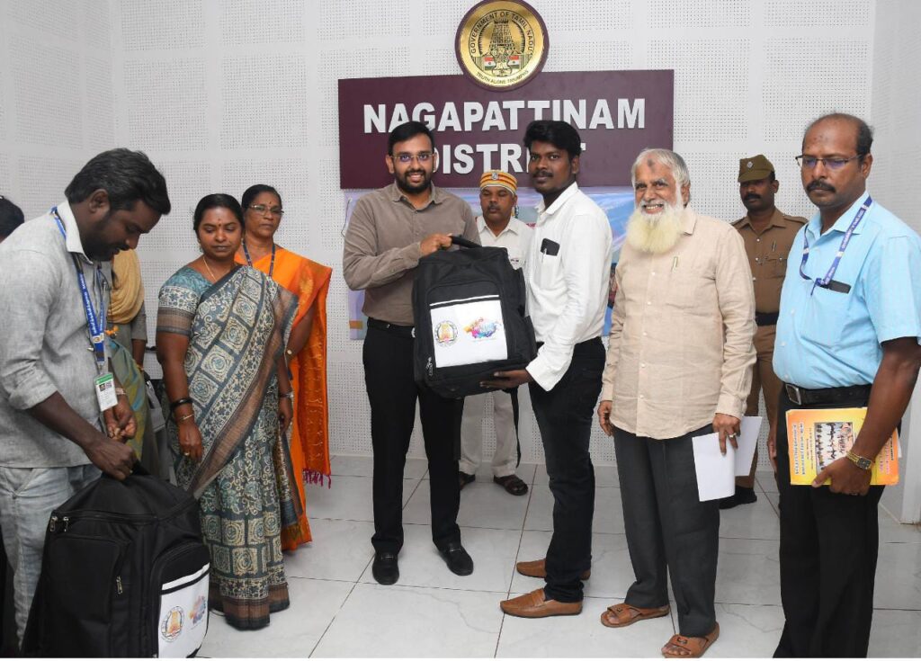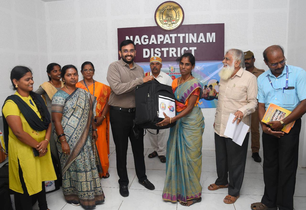 நாகப்பட்டினம் மாவட்ட ஆட்சியர் அலுவலகத்தில் தமிழ்நாடு அரசு பள்ளிக்கல்வித்துறை சார்பில் நடைபெற்ற வானவில் மன்ற கருத்தாளர்களுக்கு கற்பித்தல் உபகரணங்களை வழங்கும் விழாவில் கருத்தாளர்களுக்கு உபகரணங்களை மாவட்ட ஆட்சித்தலைவர் டாக்டர் அ.அருண்தம்புராஜ் இன்று வழங்கி கொடியசைத்து வழியனுப்பி வைத்தார்.