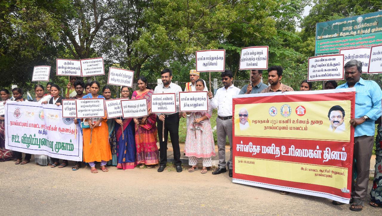 நாகப்பட்டினம் மாவட்டம் சர்வதேச பெண்களுக்கு எதிரான வன்முறைகள் ஒழிப்பு வாரத்தை முன்னிட்டு பலூன் பறக்க விடுதல், மனித சங்கிலி மற்றும் சர்வதேச மனித உரிமைகள் தின உறுதிமொழி ஆகிய நிகழ்ச்சிகளில் மாவட்ட ஆட்சித் தலைவர் டாக்டர் அ.அருண்தம்புராஜ் இன்று கலந்துகொண்டார்.