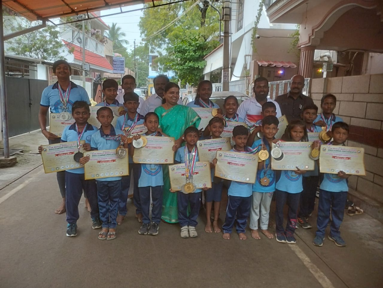 தூத்துக்குடி தமிழக அரசு விளையாட்டு துறையை ஊக்குவித்து பல்வேறு உதவிகளை செய்து வருகின்றன. அகில உலக சிலம்பாட்ட கழகத்தின் சார்பில் கன்னியாகுமாரி மாவட்டத்தில் நடைபெற்ற தேசிய அளவிலான சிலம்பாட்ட போட்டியில் தேசிய தமிழ் கலைக்கூடம் சிலம்பாட்ட கழகத்தின் சார்பாக கலந்து கொண்ட குழந்தைகள் பல்வேறு போட்டிகளில் 21 தங்கபதக்கங்கள் 15 வெள்ளி பதக்கங்கள் 9 வெண்கல பதக்கங்கள் என்று சான்றிதழ் பெற்று தூத்துக்குடி மாவட்டத்திற்கு பெருமை சேர்த்துள்ளனர். இதனையடுத்து போல்பேட்டையில் உள்ள வடக்கு மாவட்ட திமுக செயலாளரும் சமூகநலன் மற்றும் மகளிர் உரிமைத்துறை அமைச்சருமான கீதாஜீவனை அவரது இல்லத்தில் சந்தித்த குழந்தைகள் அனைவரையும் பாராட்டி வாழ்த்து தெரிவித்தார்.